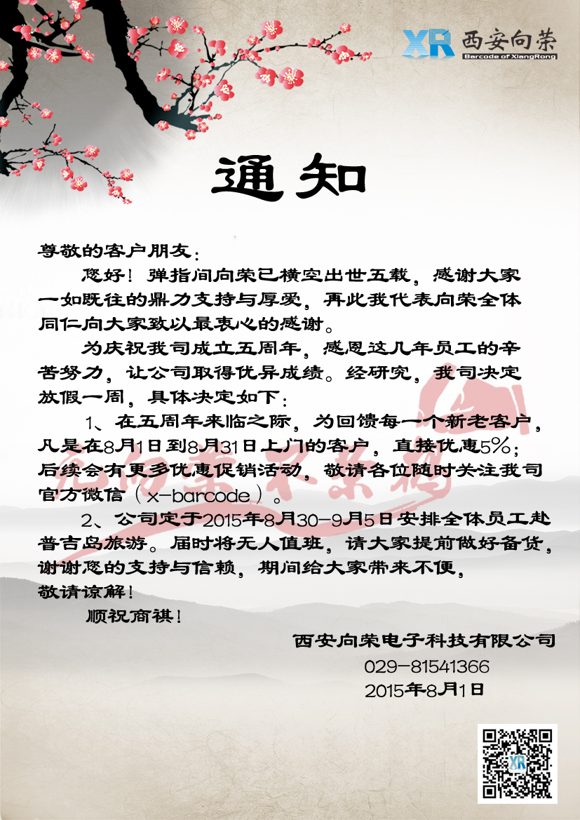 當(dāng)前位置 > 主頁 > 榮譽(yù)資質(zhì) > 西安向榮5周年年慶放假通知