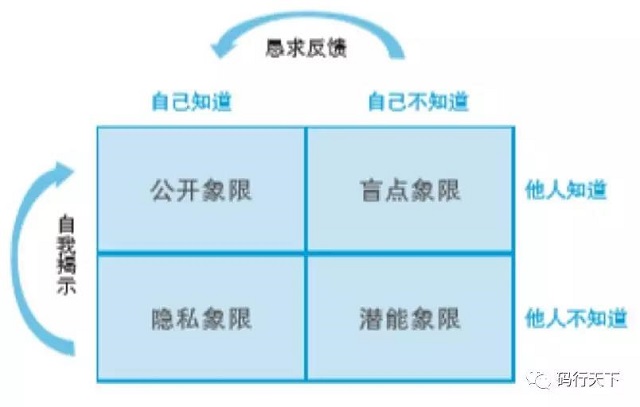 樊登老師在一次培訓課中講到每個人都有公開象限、隱私象限、盲點象限、潛力象限四個象限,一個人的影響力是由于自己的公開象限越來越大,也就是越來越多被大家了解,被大家理解,學習分享是很好的打開自己公開象限的方法,希望向榮人逐漸將自己的潛力象限轉換成公開象限,做大自己的影響力。