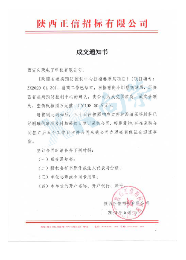 恭喜西安向榮中標(biāo)陜西省疾病預(yù)防控制中心掃描器采購項目