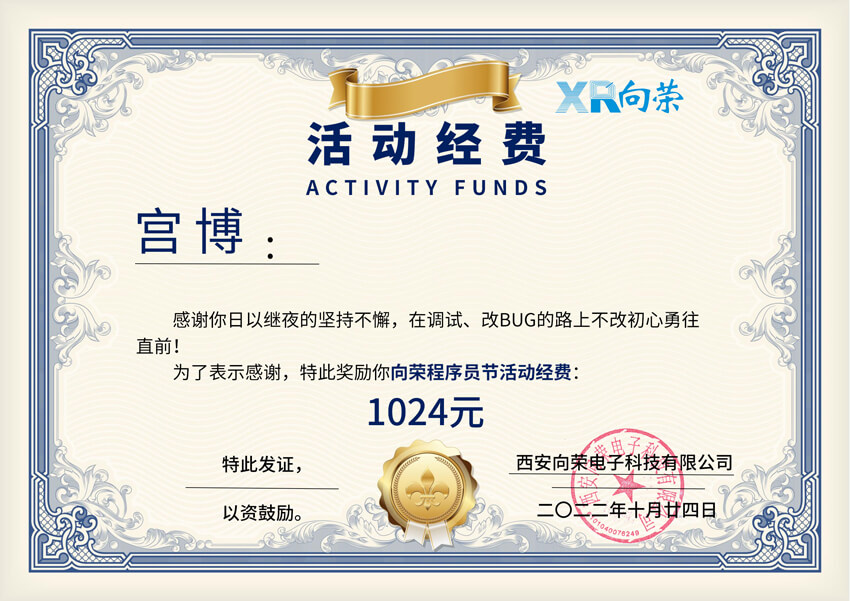 恭喜宮博、付錦香等同學每人獲得向榮程序員活動經(jīng)費1024元