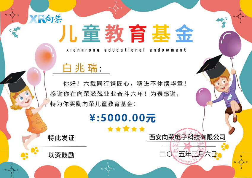 恭喜白兆瑞同學獲得向榮兒童教育基金5000元