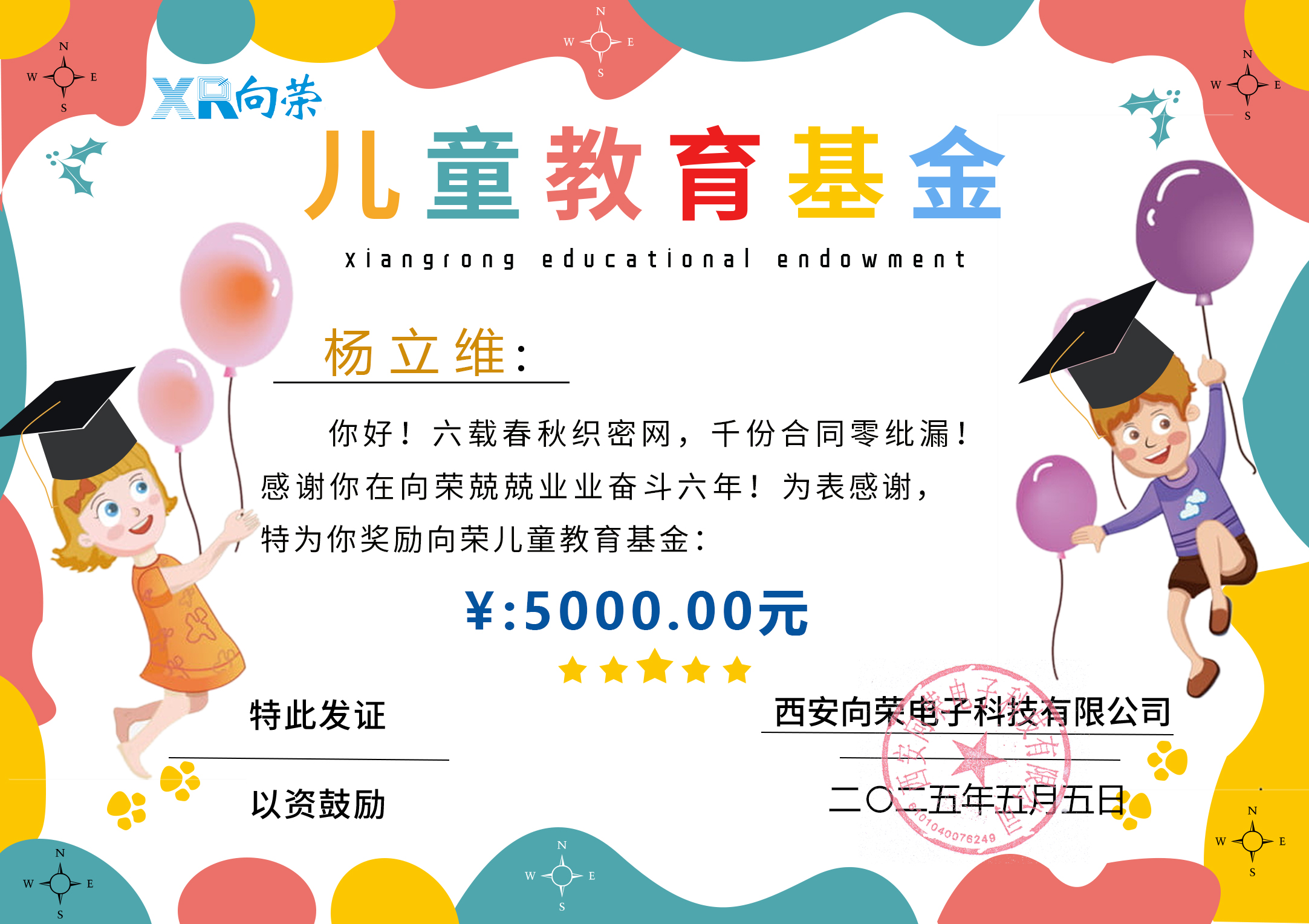 恭喜楊立維同學,獲得5000元向榮兒童教育基金