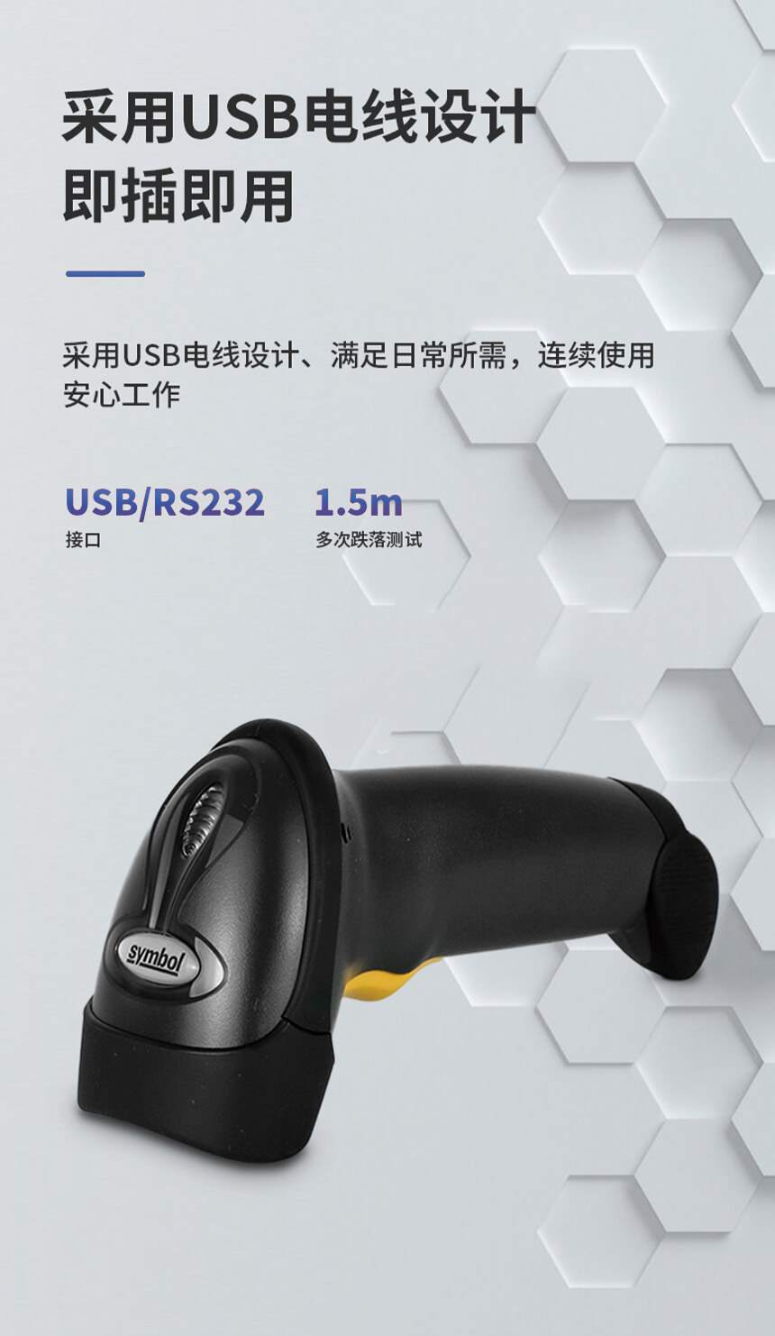 產品簡介: 斑馬(ZEBRA)symbol訊寶 LS2208 一維激光條碼掃描槍 掃描器 快遞倉庫盤點條碼槍 LS2208-SR單槍,即插即用,耐用穩定,提速工效。